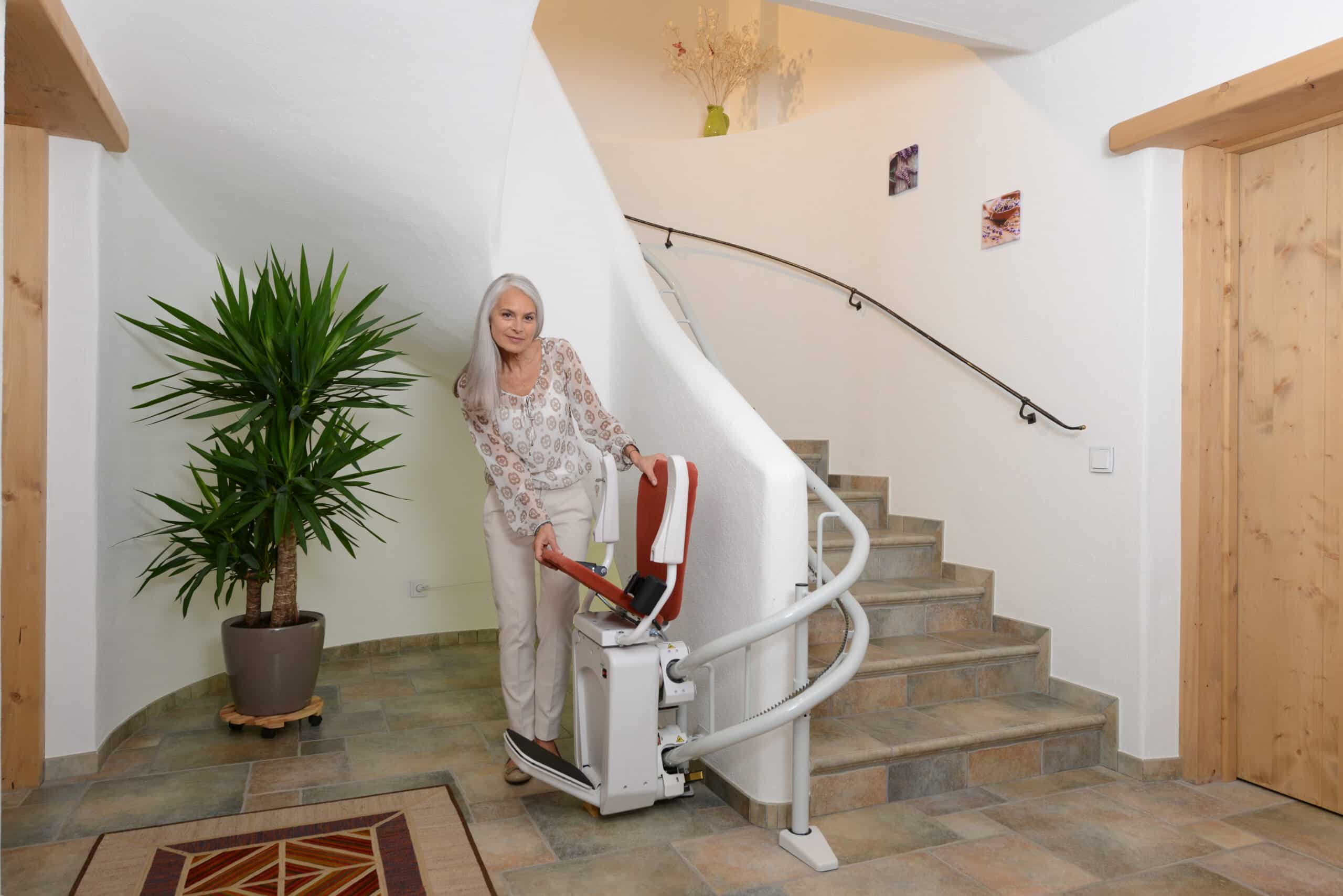 Der Treppenlift Flow X ist die ideale Lösung für alle, die auch bei engen und kurvigen Treppen nicht auf Komfort und Sicherheit verzichten möchten.